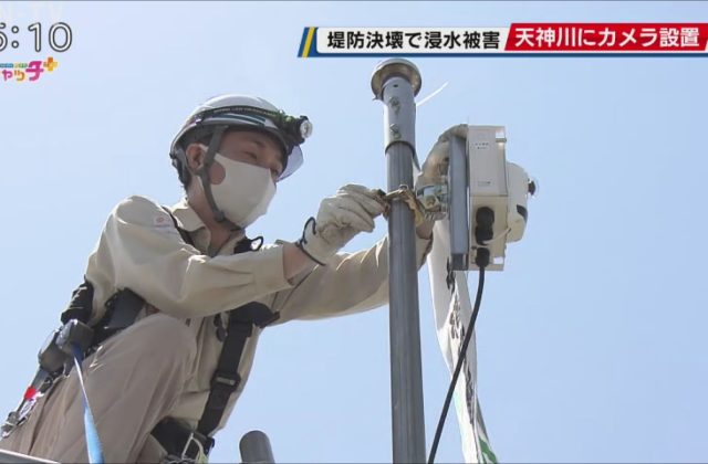 兵庫県 伊丹市の天神川に監視カメラ設置堤防決壊で住宅に被害