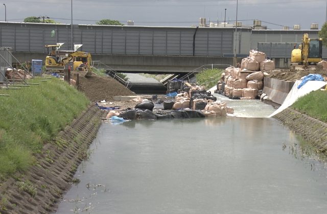 伊丹市天神川の堤防決壊受け 県が天井川を緊急点検