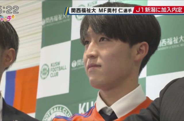 関西福祉大から2人目のJリーガー誕生 奥村仁選手 J1新潟に加入内定