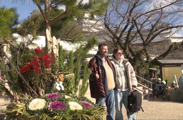 世界遺産の国宝・姫路城 恒例のジャンボ門松が登場