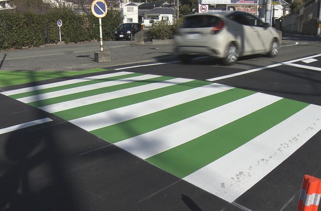 信号のない横断歩道をカラー化 交通事故防止に
