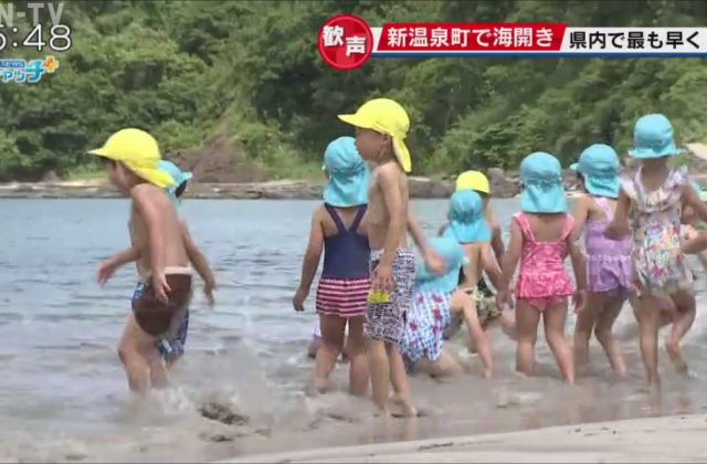 子どもたちが夏に一番乗り! 今シーズン初 新温泉町で海開き