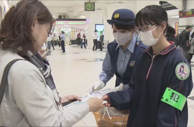夏場に向け防犯意識高める JR三ノ宮駅で痴漢・盗撮防止を啓発