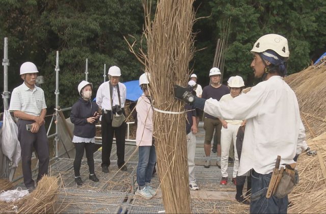 20年に一度 茅葺屋根の葺替え作業 神戸市北区の農村歌舞伎舞台で一般公開