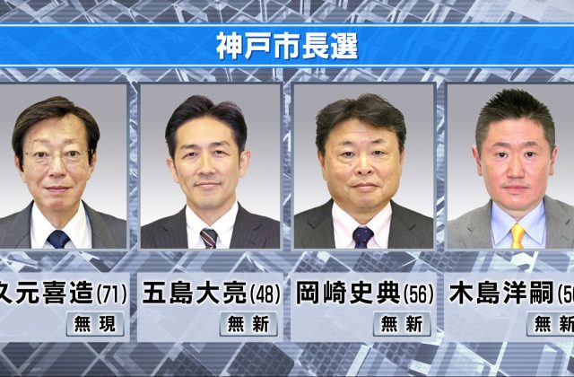 神戸市長選 投票日迎える 現職と新人 4人の争い