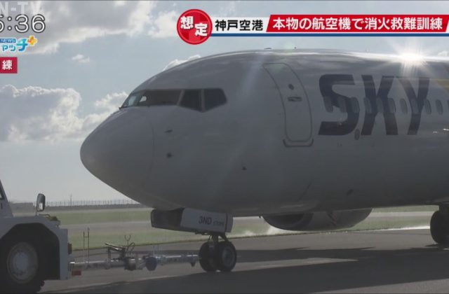 神戸空港 航空機の事故を想定し消火救難総合訓練