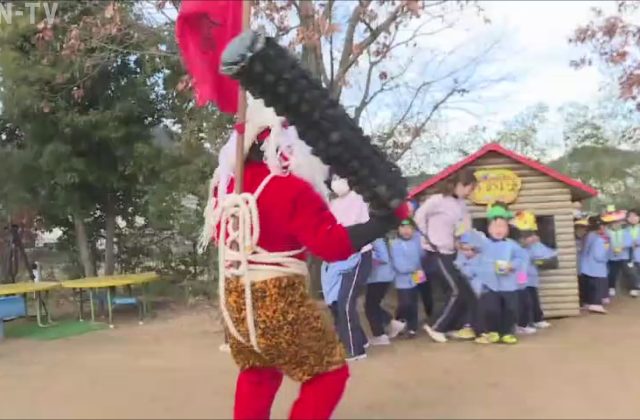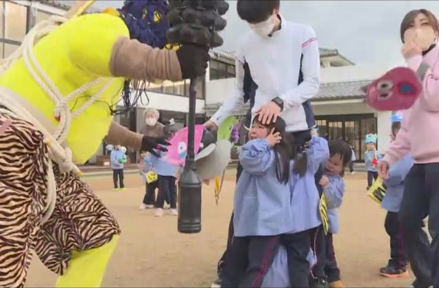 「黄・赤・青おに 全員たおした」150人の園児が豆まきで鬼退治 泣き叫ぶ子も