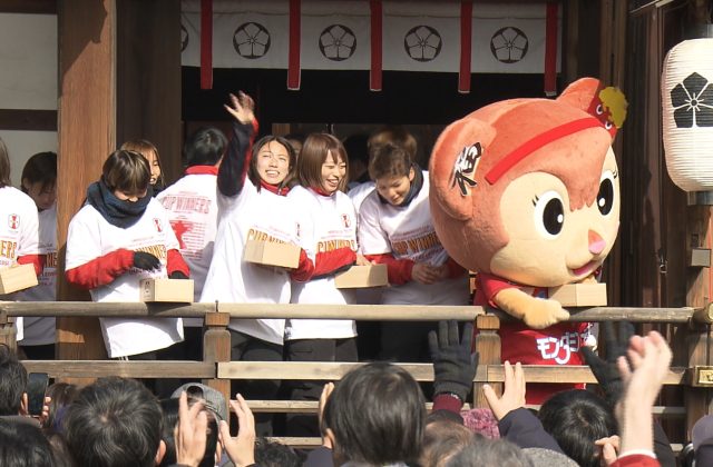 きょうは節分 INAC神戸の選手が神社で豆まき