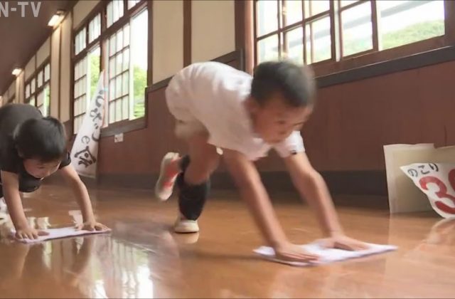 国の重要文化財に指定されている西脇市の小学校で雑巾がけ競争