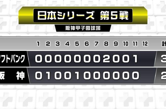 【速報】阪神タイガース2年ぶりの日本一逃す ソフトバンクが5年ぶり日本一
