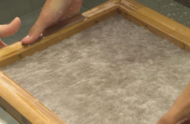 世界遺産・姫路城の障子の紙すきを高校生が体験