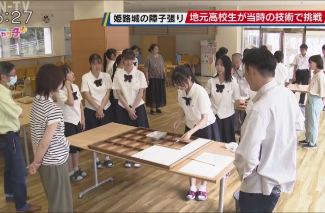 姫路市の高校生が国宝姫路城の障子張り 当時の技術で障子紙を作る