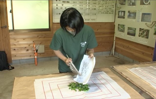 かつて養蚕で栄えた養父市 幼虫にクワの葉与える「かいこの掃きたて」