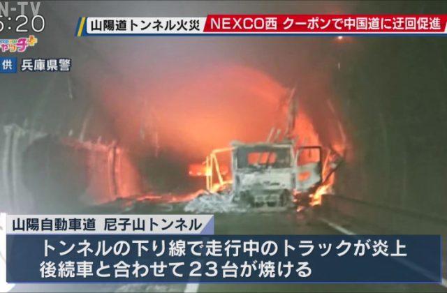 山陽道のトンネル火災 3カ月ぶり通行止め解除でNEXCO西日本がCMで注意喚起へ