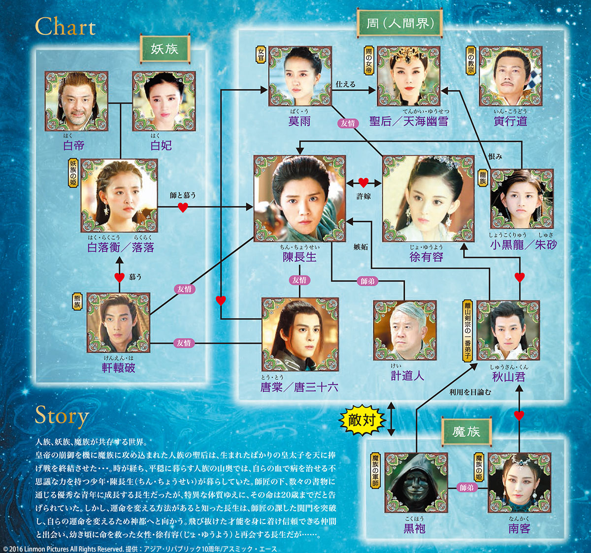 教宗は三族の統一を図るべく、魔族に続き妖族も支配しようと企む。そんな暴走する教宗を倒すため、長生は丹炉峰で結界を破った時のように、仲間たちの命星の力を集めて星盤大陣を攻撃する作戦を立てる。