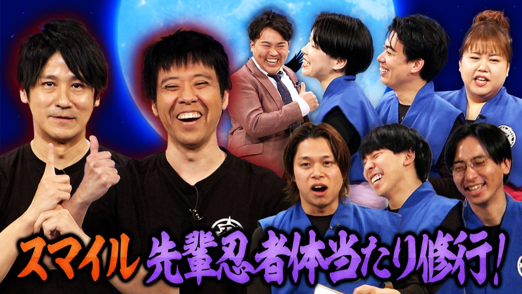 先輩忍者にスマイルを迎えての体当たり修行前半戦は、よしたかワールドが炸裂!自己紹介添削クイズで判明した、よしたかの気持ち悪いセンサーって?「よしたかと感性合わせましょう」では、奇想天外なよしたかの言動にワチャラチャメンバーも大苦戦!相方で幼馴染の瀬戸はどこまで対応できるのか?