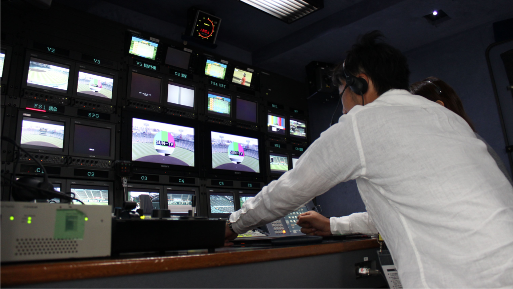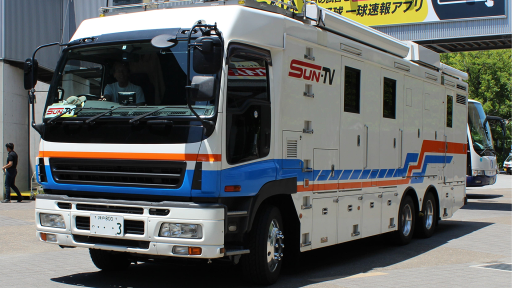 実際にサンテレビの野球中継で使用されている中継車がウインク球場に登場!中継車内を見学したり、実際に映し出されるカメラの映像を切り替えるスイッチング体験など、ワクワクがいっぱいの体験コーナー!